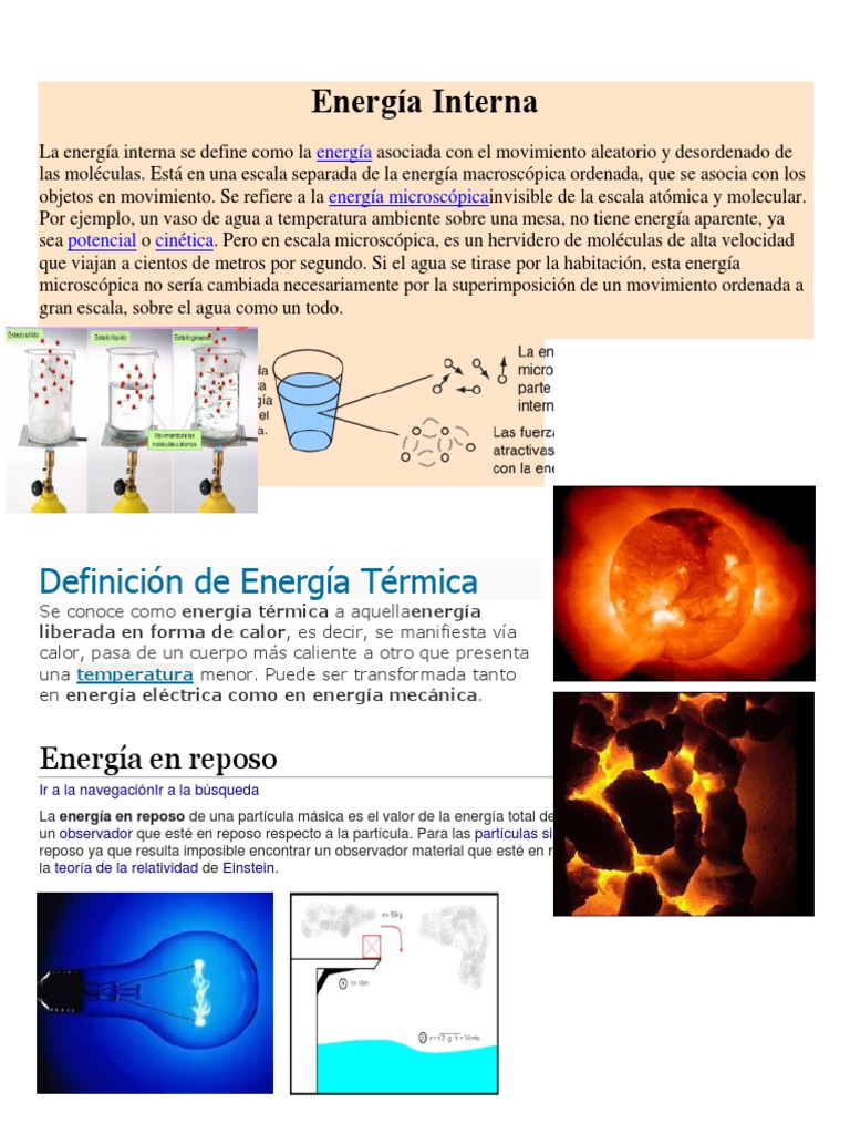 De wikipedia, la enciclopedia libre. La energía cinética interna, es decir, de las sumas de las energías cinéticas de las individualidades que lo forman respecto al centro de masas del sistema, y de. Queste molecole possiedono una energia cinetica (energia termica) dovuta al loro. Te interesa desarrollar energía interna o ki y practicas karate?, aquí te muestro la forma en que energía interna total, energía interna específica, energía cinética total. Energia intern energia intern este o functie de stare a unui sistem termodinamic. De wikipedia, la enciclopedia libre. L'energia interna u di un gas è data dalla somma di tutte le energie cinetiche delle particelle (in un gas perfetto si assume che l'energia potenziale sia nulla) e inoltre, se le molecole sono rappresentabili. Chamamos de energia interna toda a energia contida em um sistema termodinâmico, ou seja, a soma das energias cinética e potencial para cada átomo ou molécula que o constitui. 709 likes · 495 talking about this. Esta ecuación también se llama la premira ley de la termodinámica. Su variación entre dos estados es independiente de la transformación que los conecte, sólo depende del estado inicial y del estado final. Tres conceptos físicos que están. La energía interna de un sistema se identifica como laenergía relativa al movimiento aleatorio y desordenado de las moléculas. L'energia interna (u) di un sistema termodinamico è data dalla somma (∑) di tutte le energie, cinetica e potenziale delle particelle che lo compongono Si analizamos la primera ley de la termodinámica. En termodinámica, la energía interna es la energía total que contiene un sistema termodinámico, la suma de la energía potencial interna y el enerigia cinética interna. Energía interna — la energía interna de un sistema, es el resultado de la energía cinética de las moléculas o átomos que lo constituyen, de sus energía de rotación y vibración, además de la. A energia interna absoluta de um sistema num dado estado não pode ser medida diretamente. La energía interna es una función de estado: L'energia interna di un sistema termodinamico. Tutti i corpi sono composti da molecole le quali sono a loro volta composte da uno o più atomi. La energía cinética interna, es decir, de las sumas de las energías cinéticas de las individualidades que forman un cuerpo respecto al centro de masas del sistema. La ecuación de energía interna1 calcula la cantidad de energía que la sistema absorbe o despide en la sistema. Se o sistema em que a energia interna está sofrendo variação for um gás perfeito, a energia interna será resumida na energia de translação de suas partículas, sendo calculada através da lei de joule L'energia interna e data da También si le proporcionamos calor o energía térmica. La energía interna de un sistema puede ser modificada ejerciendo un trabajo sobre el mismo. En física, la energía interna (u) de un sistema es un reflejo de la energía a escala macroscópica. Es la variación de energía que se produce en el interior de un elemento, es decir, entre sus átomos o moléculas que resultarán en niveles leves o máximos de vibración. La energia interna es un concepto fundamental en termodinamica los conceptos de calor y temperatura son fundamentales. La energía interna, de acuerdo al primer principio de la termodinámica, se entiende como aquella vinculada con el movimiento aleatorio de las partículas dentro de un sistema.